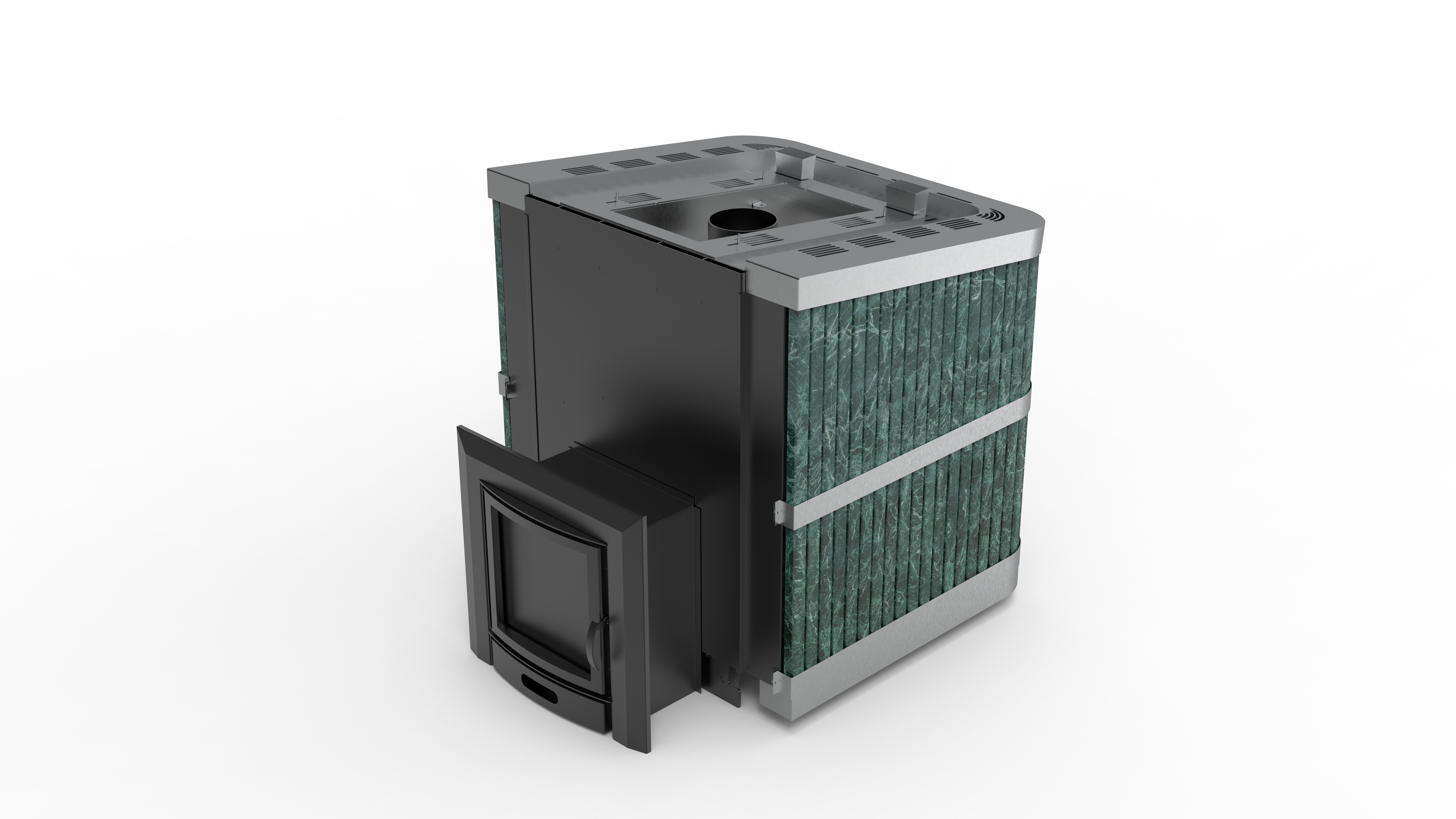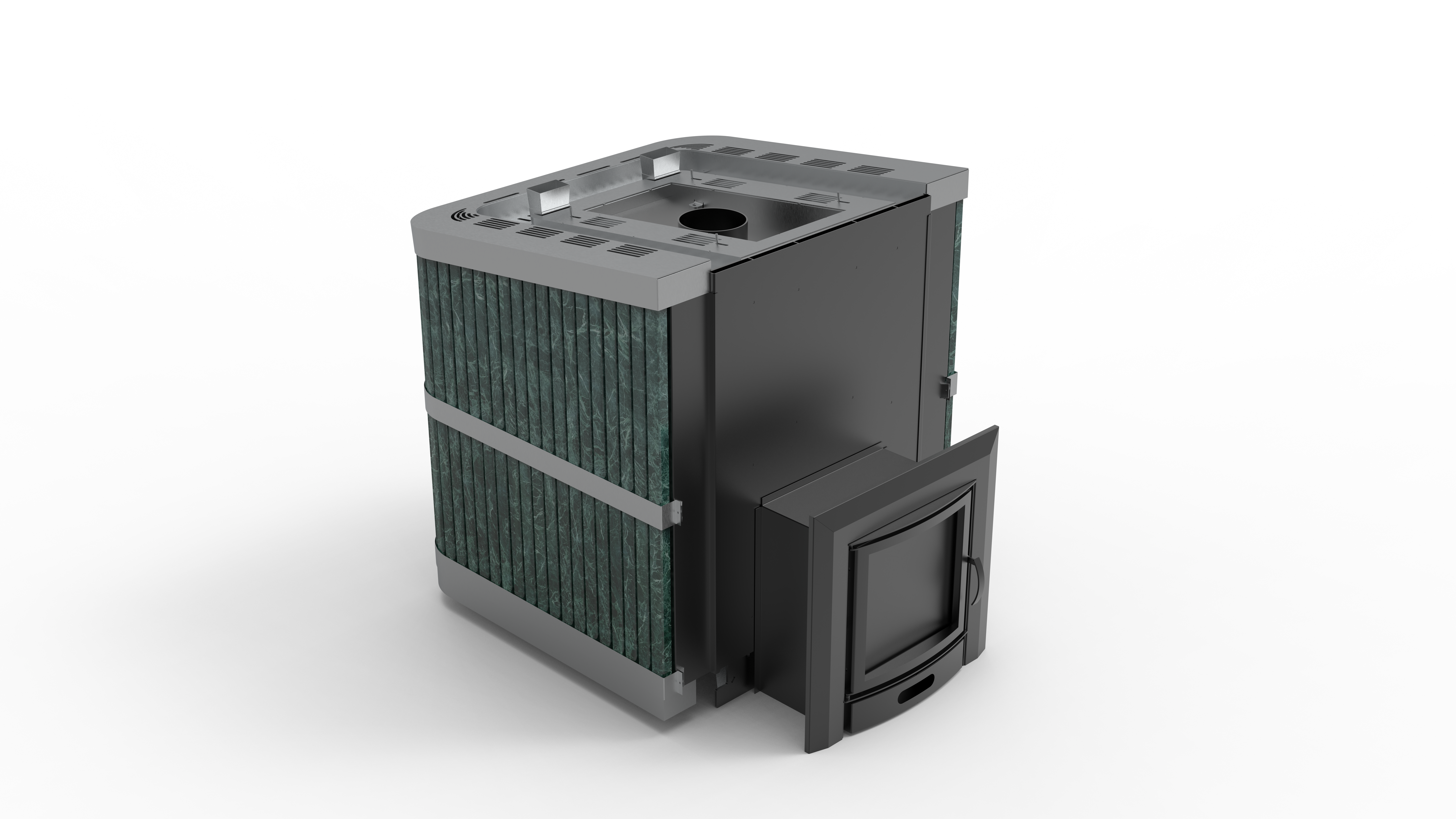 Банная печь с закрытой каменкой и облицовкой из натурального камня пероксенит (по запросу возможен выбор других видов камня) предназначена для интенсивной коммерческой эксплуатации в корпоративных парных, общественных и городских банях, а также в банных комплексах и SPA‑зонах.