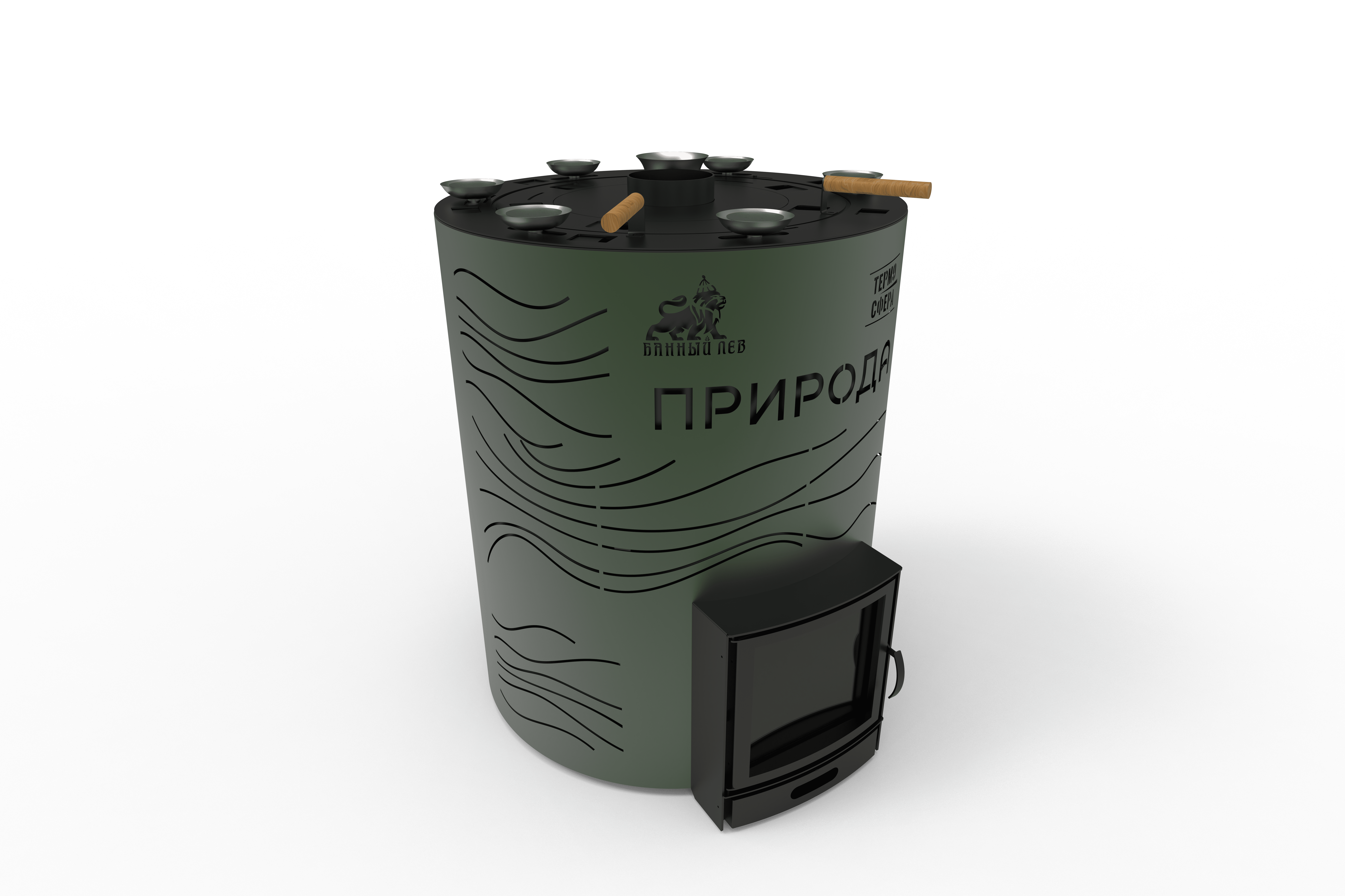 Пар образуется в закрытой каменке, где температура камней может достигать 500–600 °C, поэтому подача воды даёт плотный мелкодисперсный пар, комфортный для «русских» режимов парения и коллективных программ. Конструкция каменки и парообразование по зонам позволяют работать с разными режимами — от мягкого, длительного прогрева до более контрастных процедур.