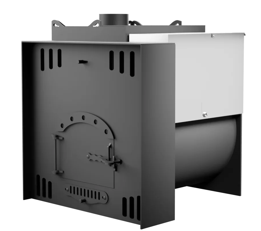 Печь Горыныч 3, каменка закрытая с парогенератором с левой стороны, большая дверь со стеклом