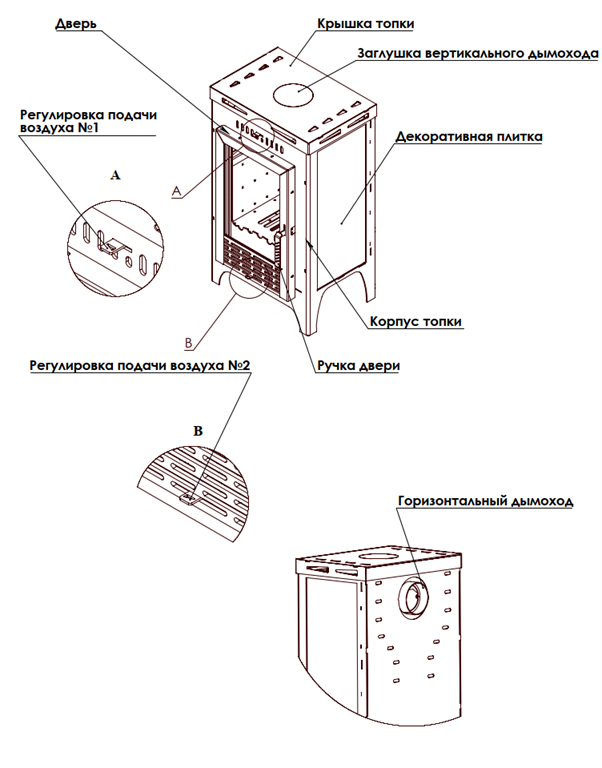 • Рекомендуемое топливо — сухие дрова с влажностью не более 18%